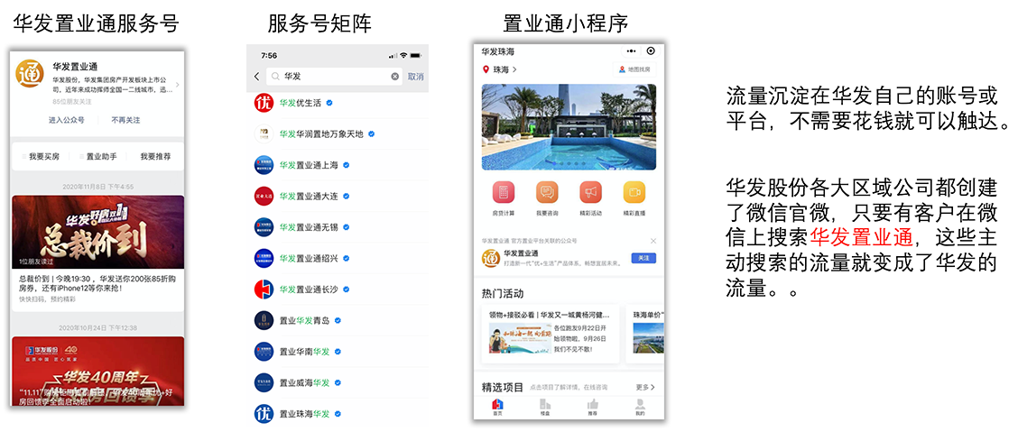 华发股份就在总部层面成立了互联网工作小组,小组主要负责探索并落地房地产互联网营销的相关工作;